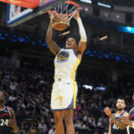 Clippers guard Chris Paul, right, smiles on the bench next to forward Kawhi Leonard during the first half of a preseason game against the Golden State Warriors on Friday night in San Francisco. (AP Photo/Jeff Chiu) Clippers forward/center John Collins (20) grabs the pass as he is double teamed by Golden State Warriors center Al Horford (20) and Warriors forward Draymond Green … [Read more...] about Kobe Sanders leads Clippers past Warriors in preseason finale