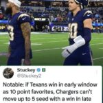 With the playoffs around the corner, here are some scenarios that the Chargers are in line to play for heading into the final week of the NFL regular season. Here are some key playoff seeding points the Chargers are playing for this Sunday. 5th Seed The Chargers need to win against Denver and get some help to officially lock the 5th seed. A Texans loss to the … [Read more...] about Examining the Chargers 2026 Playoff Scenarios