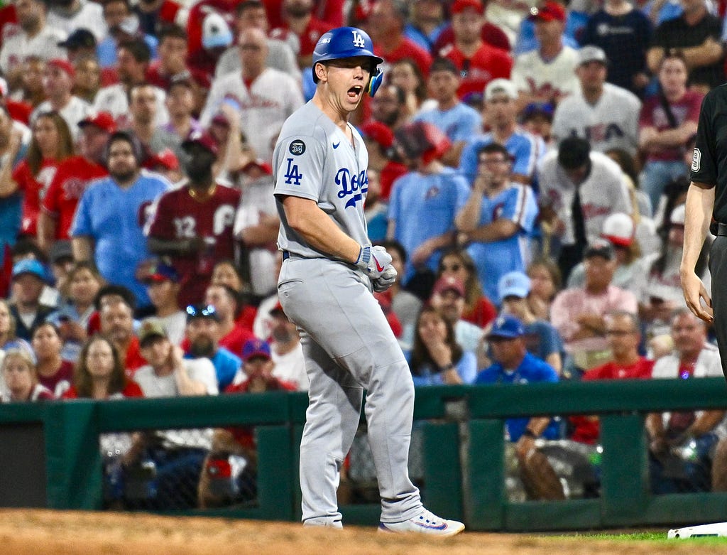 With the Dodgers leading 1–0, Smith lined a two-run single on the first pitch he saw from Phillies reliever Orion Kerkering.