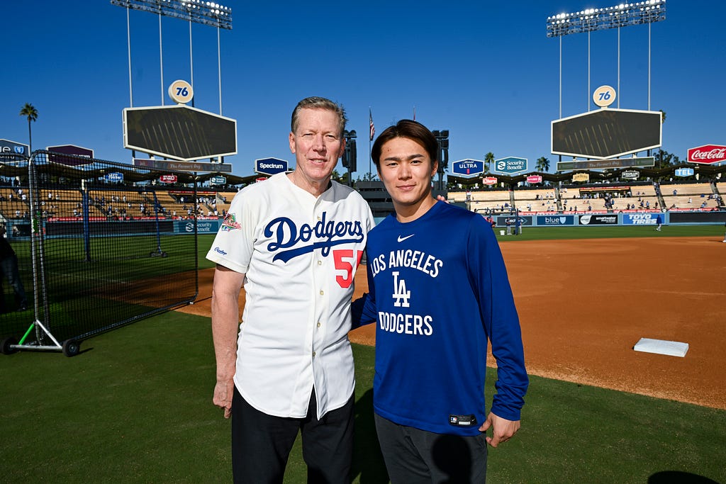 Those names are all Dodgers — Yamamoto, Orel Hershiser (in 1988: 2.26 regular season/1.05 postseason ERAs) and Burt Hooton (in 1981: 2.28/0.82 ERAs).