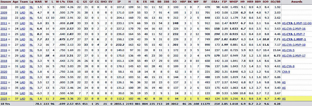 The Dallas, TX native and Dodgers first-round draft pick in 2006 out of Highland Park High School in Dallas made his Major League debut on May 25, 2008 as a 20-year-old. He made his final MLB appearance on Sunday, September 28, 2025 at 37 years old, in the Dodgers 6-1 win over the Seattle Mariners at T-Mobile Park, where he did not allow a run and only four hits, while walking one and striking out seven, to earn his 11th win of the season and 223rd of his historic career.