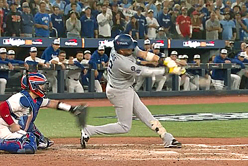 sparked the Dodgers offense in their eventual 11-inning 5-4 win over the Toronto Blue Jays