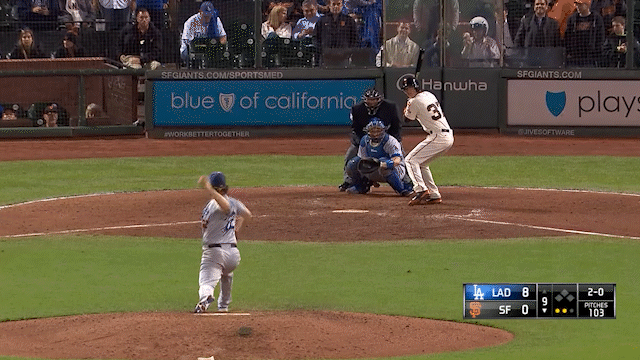 Against reliever George Kontos, Kershaw hit a leadoff homer in the bottom of the eighth to center field. Kershaw became the first Dodger pitcher to hit a home run on Opening Day since Don Drysdale in 1965.