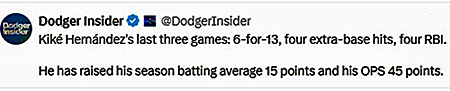 Well, he’s done again, just as he seems to do every season right about this time. Dodgers utility infielder/outfielder Kiké Hernández has absolutely exploded at the plate – again.