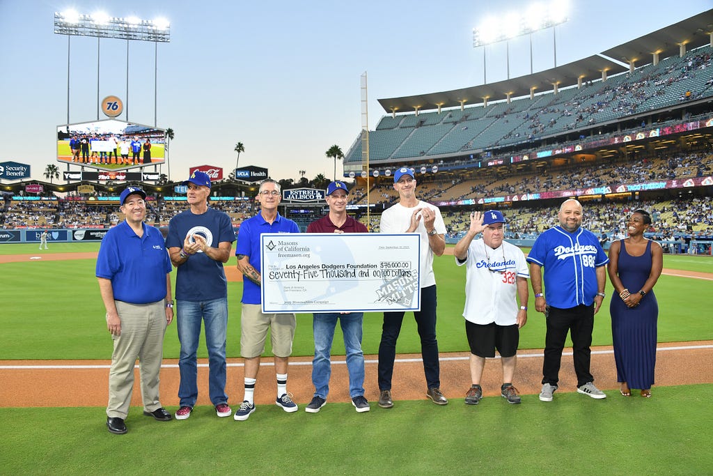 That commitment was celebrated at Dodger Stadium this season, when representatives from the Masons of California — Arthur Salazar, Doug Ismail, Chip Herwegh, Sean Mantucca, Greg Cherry and Freddie Davis — took the field to present a $75,000 check to LADF CEO Nichol Whiteman. The moment honored a partnership built on shared values: creating access, building equity and opening doors for youth across Los Angeles.