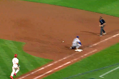 Phillies pinch-hitter Harrison Bader laced a single to left to put runners on first and second and only one out. Fortunately, Vesia got Phillies left fielder Max Kepler to ground into a force out to Dodgers first baseman Freddie Freeman who fired to Betts at second base for the second out of the inning. It did, however, move Stott (representing the tying run) to third base, with Kepler standing on first base (representing the winning run).