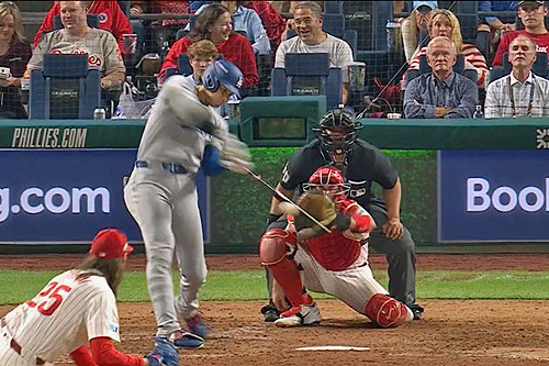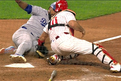 All four Dodgers runs came in the top of the seventh inning, the first of a fielders choice to short by Dodgers left fielder Kiké Hernández on which his namesake Teoscar scored on a very close play at the plate; so close, in fact, that the Phillies challenged the safe call – and lost.