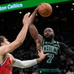 Clippers guard James Harden, left, looks to drive Boston Celtics guard Jordan Walsh, right, during the first half of an NBA basketball game, Sunday, Nov. 16, 2025, in Boston. (AP Photo/Robert F. Bukaty) Clippers forward Derrick Jones Jr., bottom right, holds his knee after going down during the first half of an NBA basketball game against the Boston Celtics, Sunday, Nov. 16, … [Read more...] about Clippers’ rally falls short in Boston