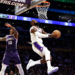 Lakers forward Lebron James, center, drives to the basket against Sacramento Kings guard Demar Derozan (10) as center Maxime Raynaud (42) watches during the first half of an NBA basketball game, Sunday, Dec. 28, 2025, in Los Angeles. (AP Photo/Jessie Alcheh) Lakers forward Lebron James reacts while holding his back during the second half of an NBA basketball game against the … [Read more...] about Lakers blow past Kings to snap 3-game skid