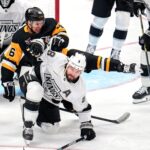 Pittsburgh Penguins’ Blake Lizotte (46) collides with Kings’ Drew Doughty (8) during the first period of an NHL hockey game in Pittsburgh, Sunday, Nov. 9, 2025. (AP Photo/Gene J. Puskar) Kings’ Corey Perry (10) celebrates after his goal with Cody Ceci (5) during the third period of an NHL hockey game against the Pittsburgh Penguins in Pittsburgh, Sunday, Nov. 9, 2025. (AP … [Read more...] about Kings open 6-game trip with win over Penguins
