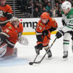 Ducks goaltender Lukas Dostal, right, shows his frustration after giving up a goal to the Dallas Stars’ Oskar Bäck (10) during the first period on Friday, Dec. 19, 2025, at the Honda Center. (Photo by Ronald Martinez/Getty Images) The Dallas Stars’ Jamie Benn, right, skates with the puck as the Ducks’ Radko Gudas defends during the first period on Friday, Dec. 19, 2025, at the … [Read more...] about Jason Robertson, Stars crush Ducks with 8-goal effort
