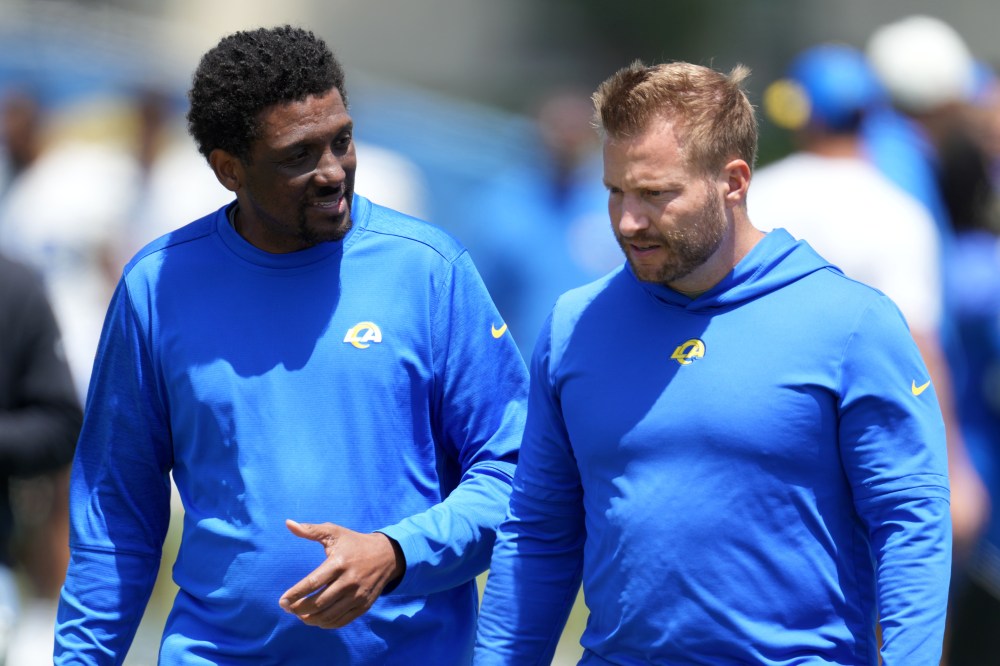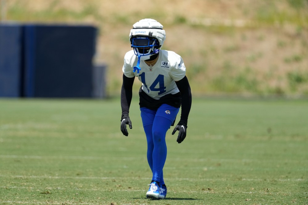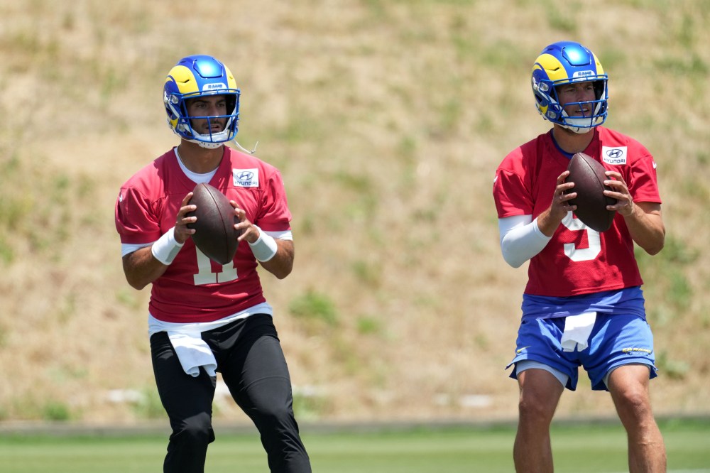 Tuesday’s session was the first one open to the media, so photographers were able to grab some shots of not only the veterans on the team, but also the newcomers. Texas head coach Steve Sarkisian was in attendance as an observer and friend of Sean McVay’s, while Jordan Whittington, Verse and Tre Tomlinson were also on the field working.