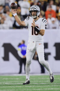 Flacco outdueled fellow 40-something Aaron Rodgers in Week 7, going 31 for 47 for 342 yards and three touchdowns in a 33-31 thriller. He made superstar wide receiver Ja’Marr Chase the focal point of the offense, targeting him on a jaw-dropping 23 throws and hitting him 16 times for 161 yards and a score. Chase has already hauled in 26 passes and two of Flacco’s five TDs as a Bengal. Flacco has yet to throw a pick with the team after tossing six in four games with the Browns.